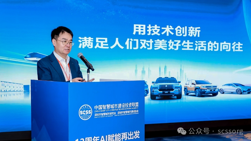 比亚迪新材料有限公司董事长、中智联联席主席、深圳市智慧城市建设协会会长、首席科学家刘伟华带来了“数智融合赋能产业新优势”的主题分享。彰显了深圳世界500强企业新能源车大鳄的创新成果和发展大局。