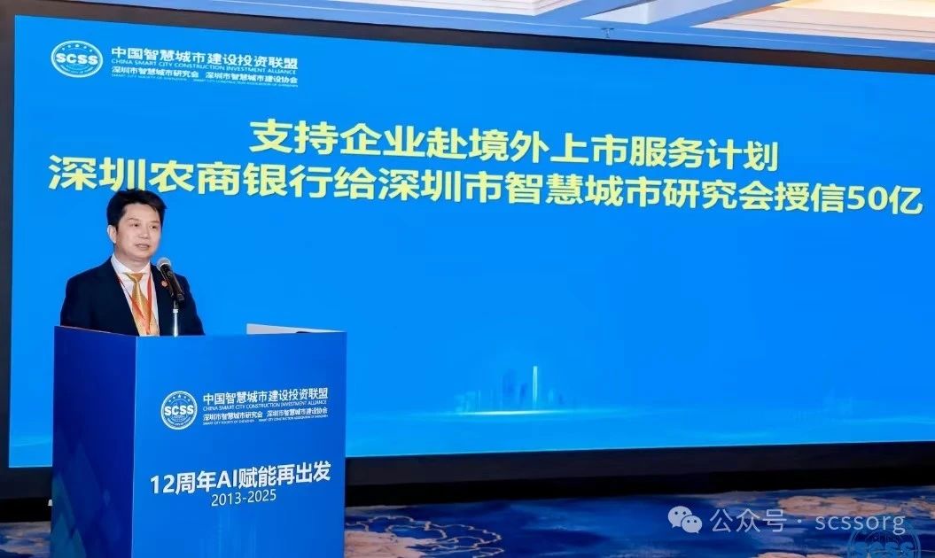 同时,由中国智慧城市建设投资联盟总秘书长\执行会长、傲盛(深圳)企业孵化有限公司董事长孙志光代表中智联理事会隆重发布“支持企业赴境外上市服务计划和深圳农商银行给深圳市智慧城市研究会授信50亿元”。
